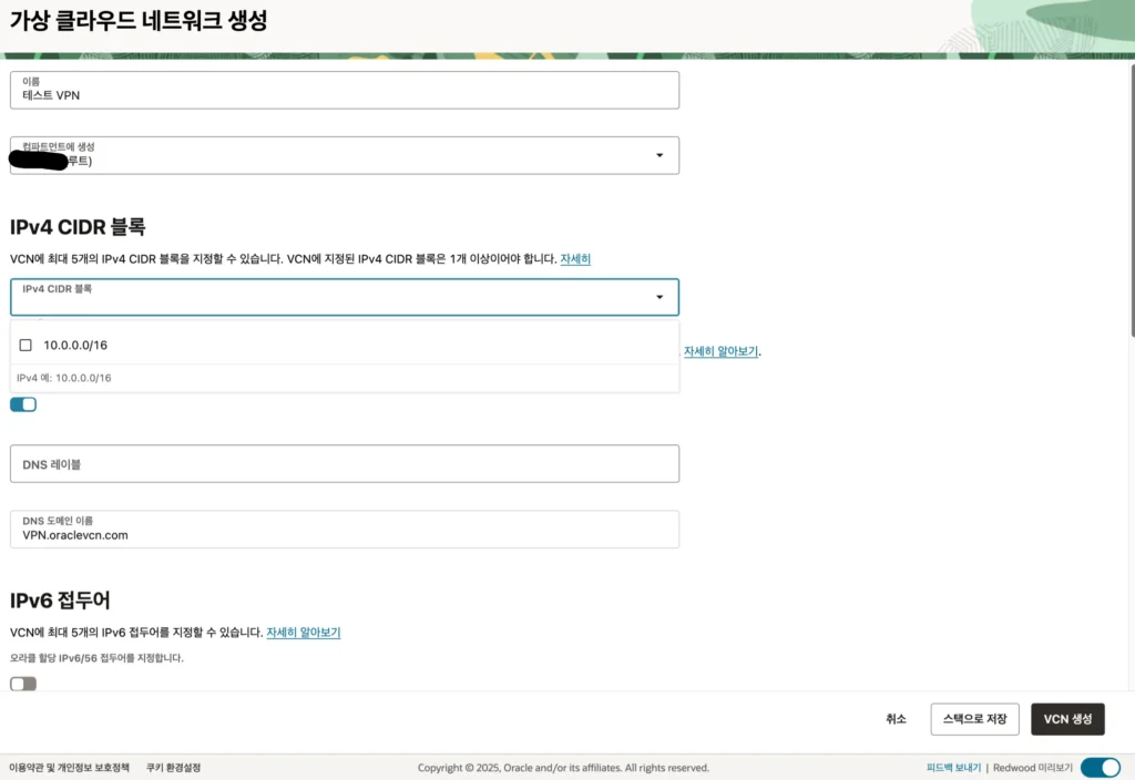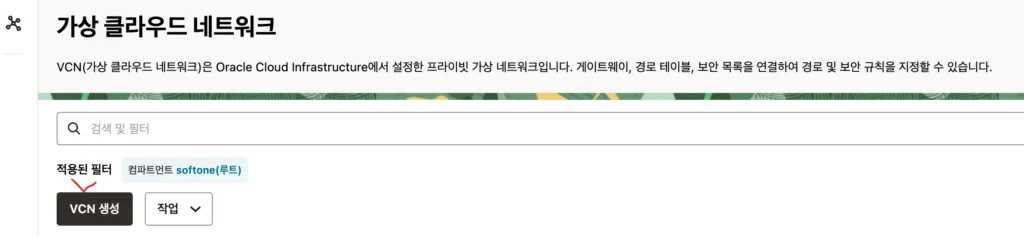 컴퓨트 인스턴스를 생성하기 전에 먼저 네트워크 환경을 구축해야 합니다. VCN은 오라클 클라우드 내에서 사용하는 가상 네트워크로, AWS의 VPC와 유사한 개념입니다.